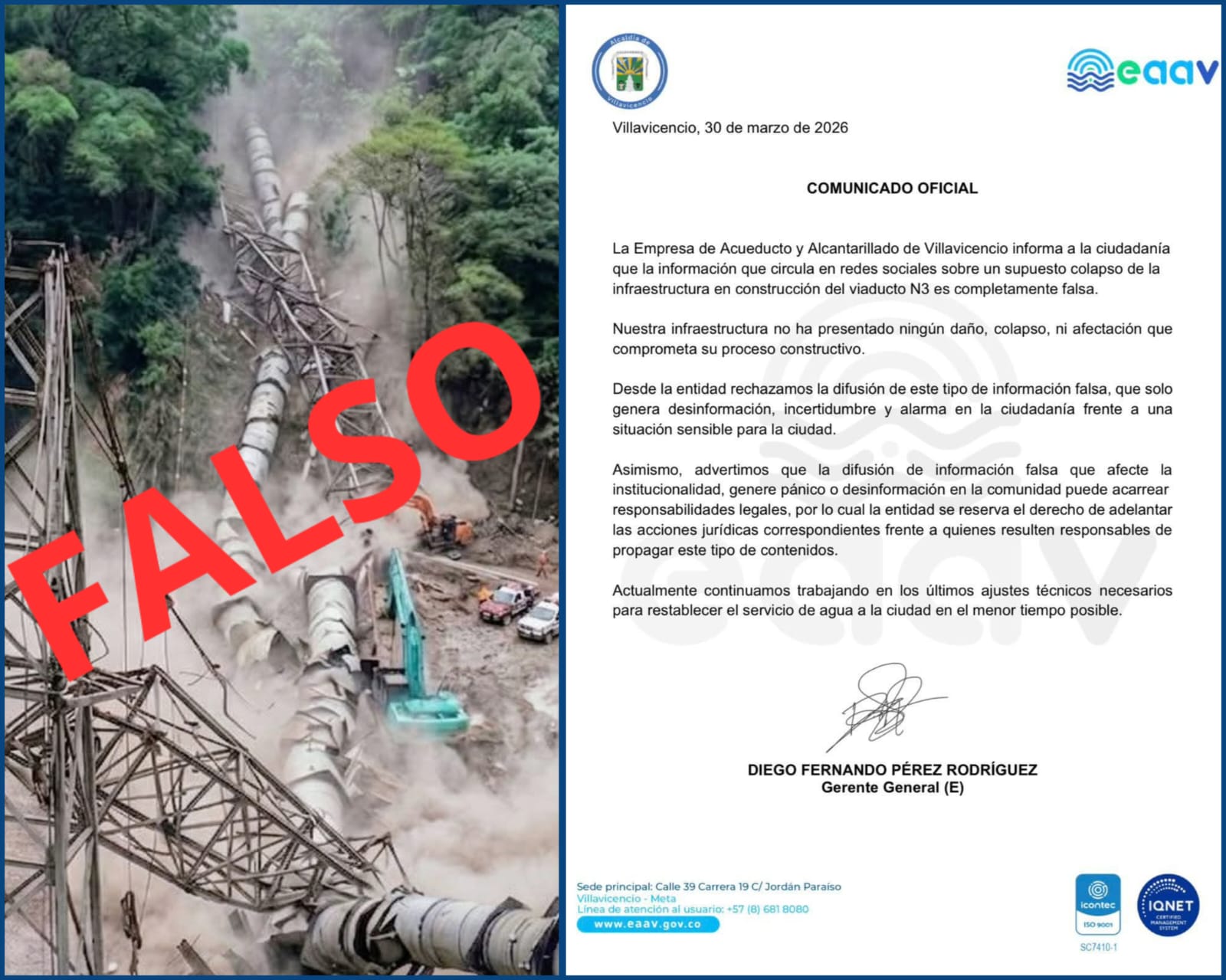 Empresa de Acueducto y Alcantarillado de Villavicencio desmiente el supuesto colapso de las obras del viaducto 3